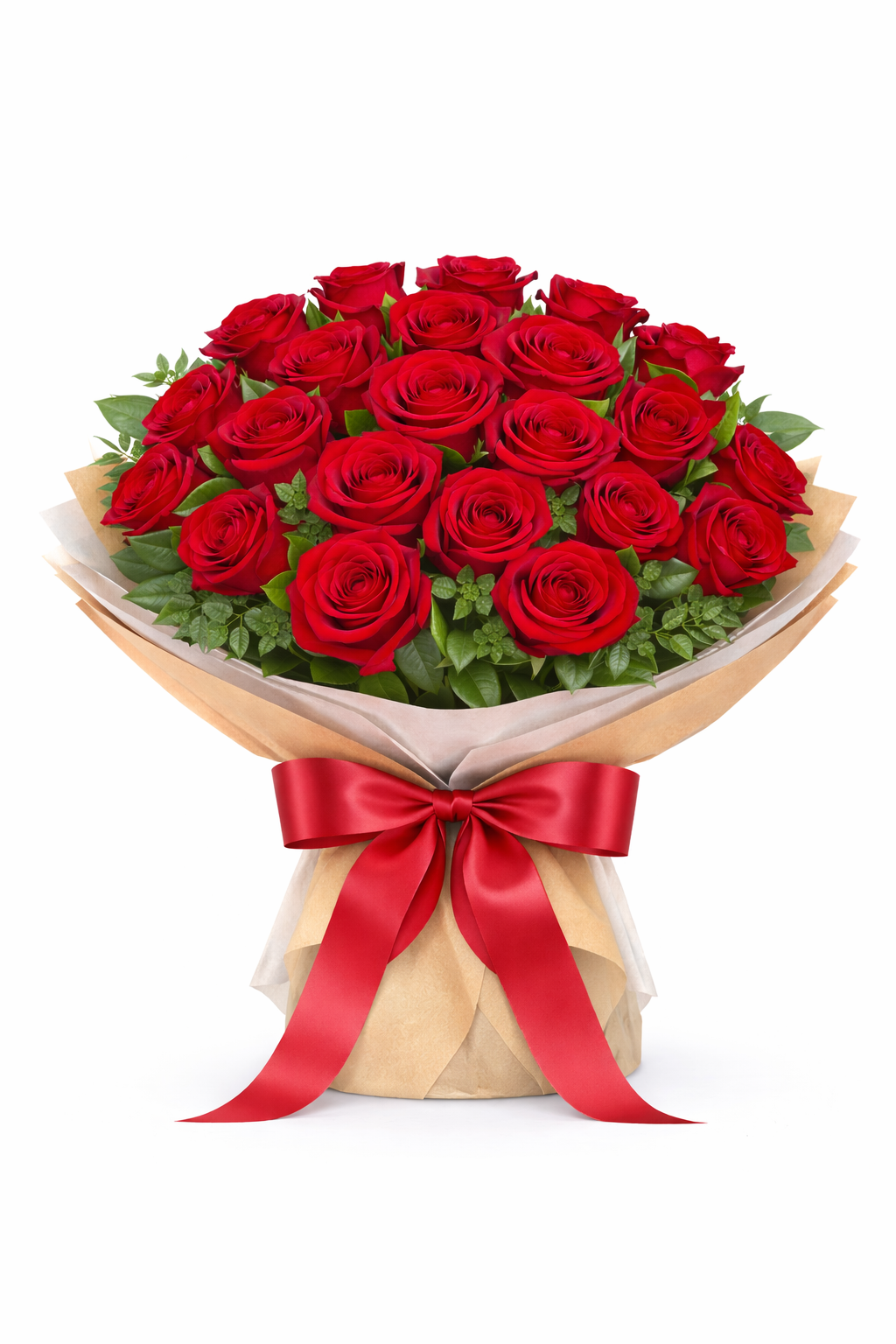 Dê de presente este buquê de 24 rosas vermelhas e expresse o seu sentimento de amor, paixão ou admiração. Sempre romântico, este buquê de rosas será um sucesso.