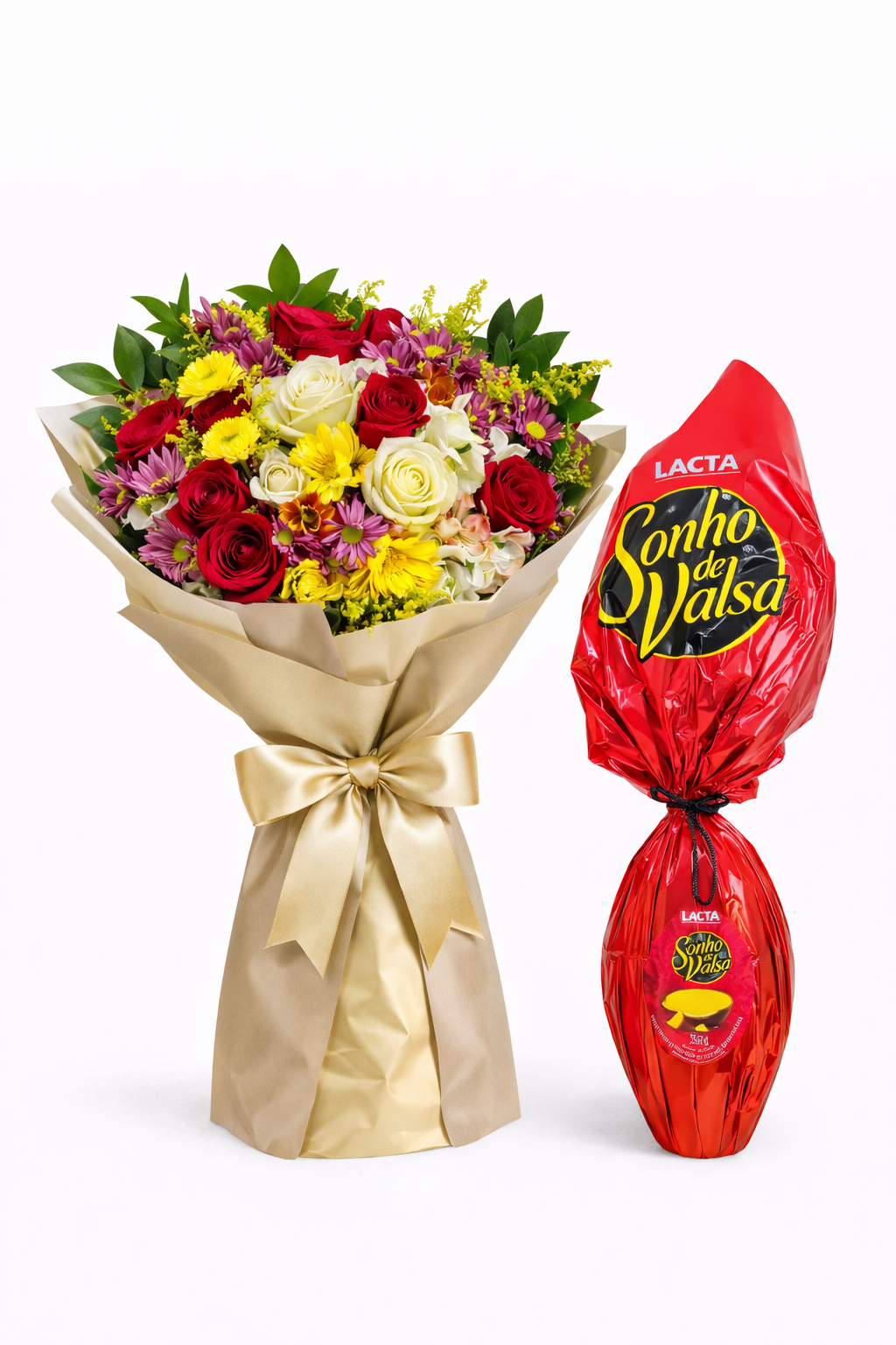 Celebre a Páscoa com este encantador buquê de flores e um delicioso Ovo de Páscoa Sonho de Valsa! Surpreenda alguém especial com este presente único, combinando a beleza das flores mistas com o irresistível sabor do chocolate. Este buquê exclusivo inclui uma variedade de flores frescas e coloridas, cuidadosamente selecionadas para transmitir a alegria e a renovação da temporada. Além das flores, este presente inclui um Ovo de Páscoa Sonho de Valsa (357g) ou similar, perfeito para satisfazer os desejos mais doces nesta época festiva. O chocolate cremoso e o crocante wafer vão encantar os sentidos e tornar a Páscoa ainda mais especial. Com entrega disponível em todo o Brasil, você pode enviar este presente único para amigos e familiares, estejam eles perto ou longe. Faça da Páscoa um momento memorável com este buquê de flores e Ovo de Páscoa Sonho de Valsa, uma combinação perfeita de beleza e sabor que certamente será apreciada por todos!