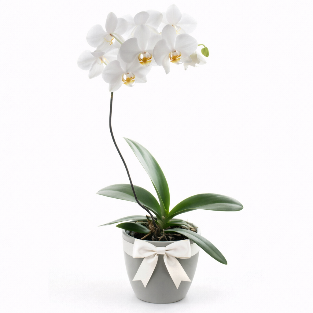 Deslumbre com a pureza da Orquídea Phalaenopsis branca, uma escolha elegante e charmosa para qualquer ocasião. Com uma única haste, esta planta cativante é garantia de sucesso como presente. Celebre com simplicidade e sofisticação – adquira agora esta deslumbrante orquídea Phalaenopsis branca e deixe seu gesto falar volumes.